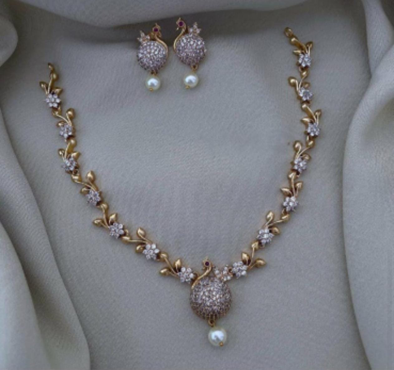 ad stone diamond look peacock design necklaceAD Stone Diamond Look Peacock design Necklace
