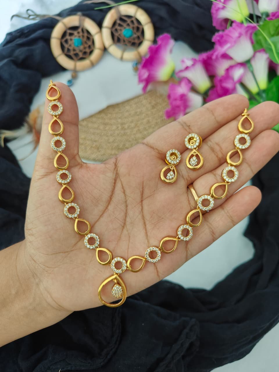 ad stone gold finish necklaceAD stone Gold Finish Necklace