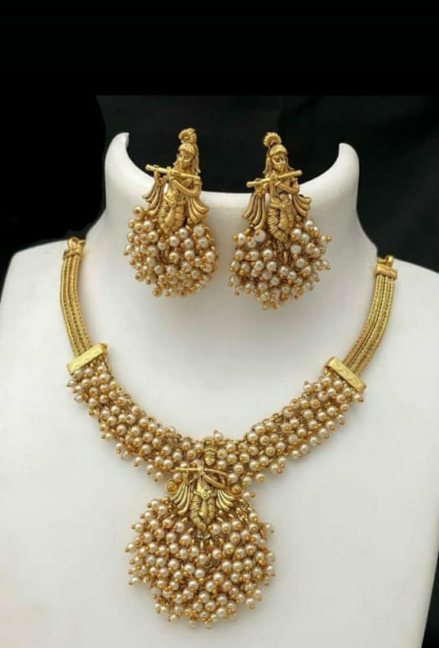 Krishna with Flute Pearl Necklace