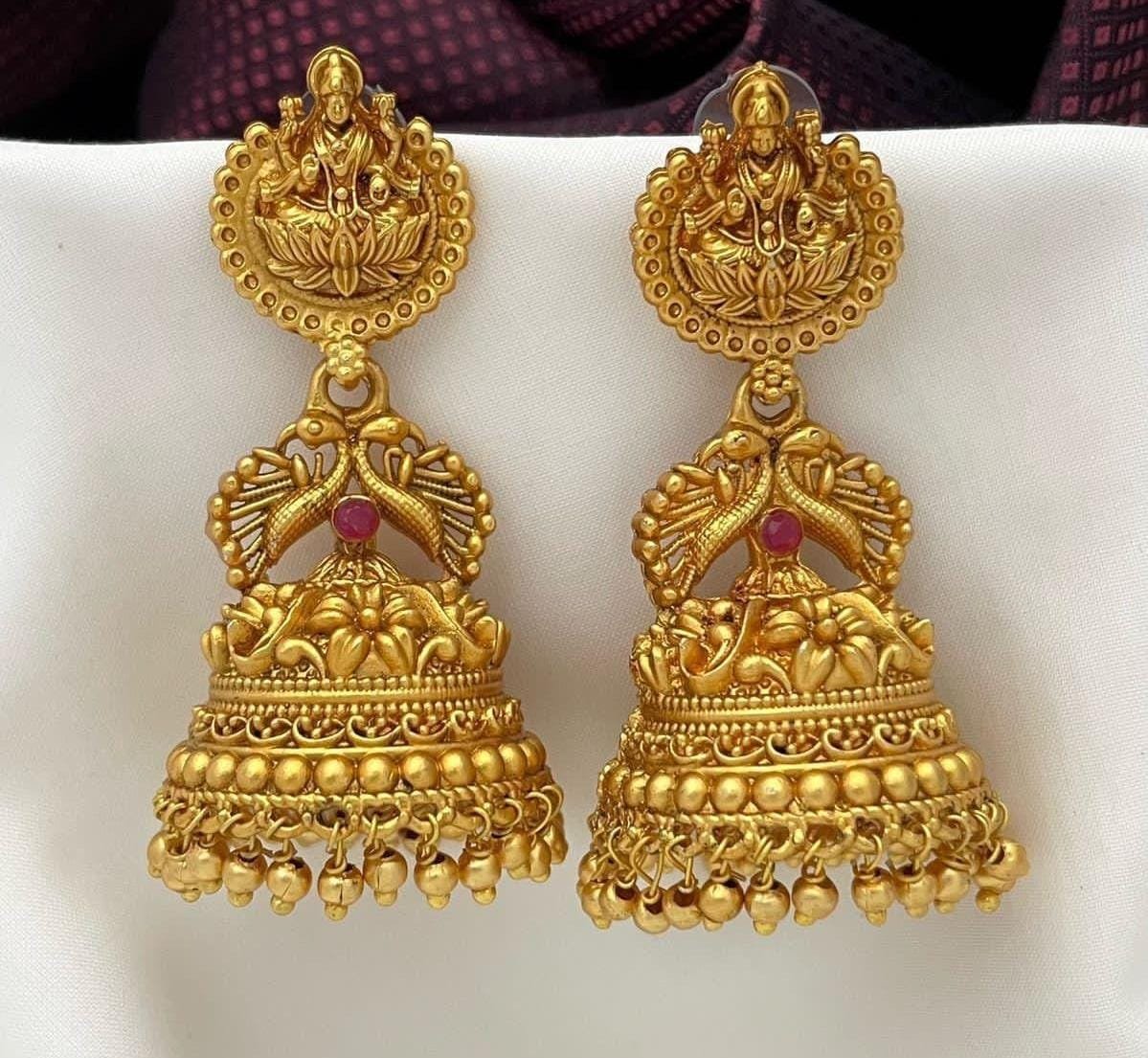 Temple design matte finish earrings