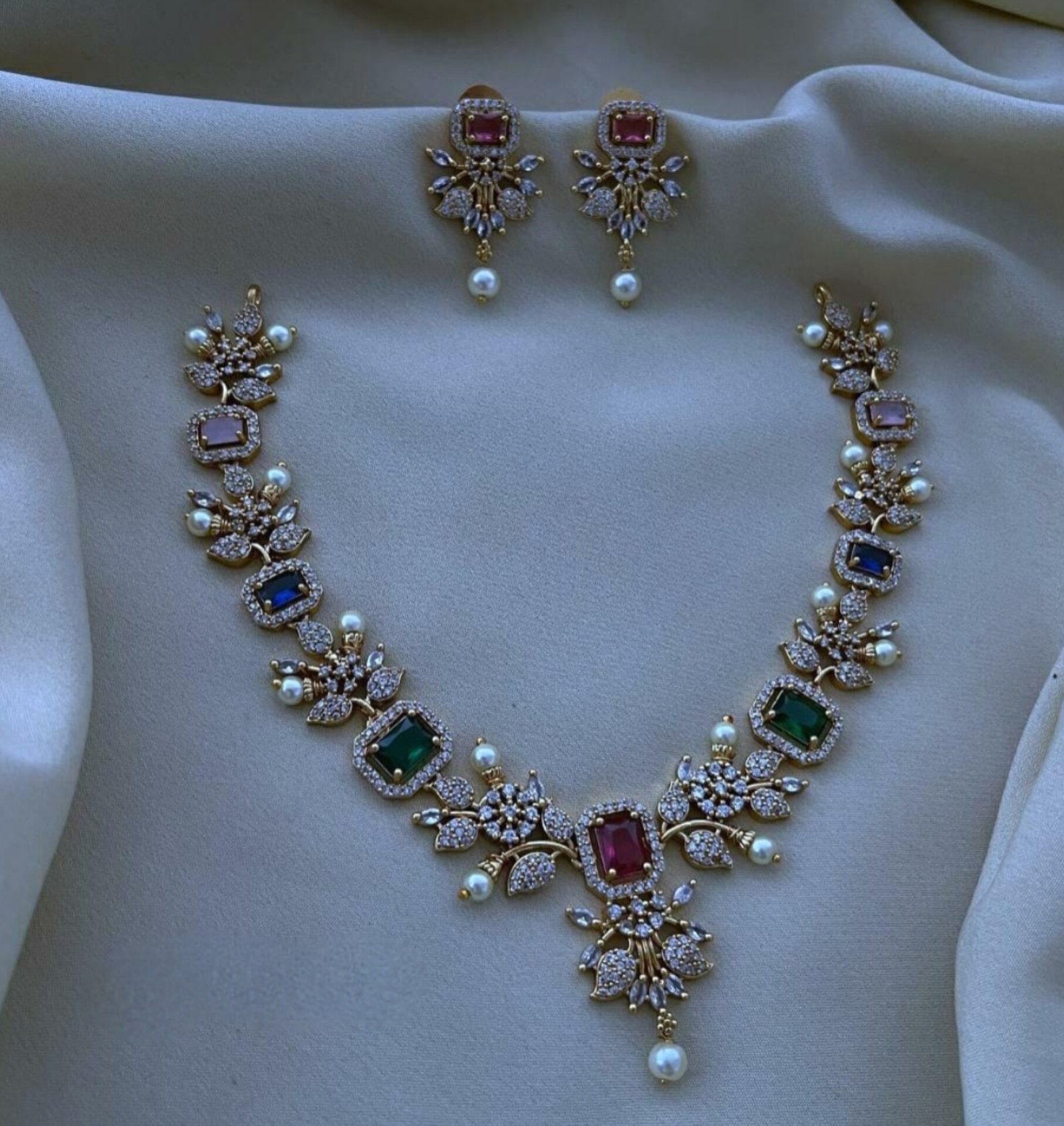 Trending Multi colour ad stone necklace